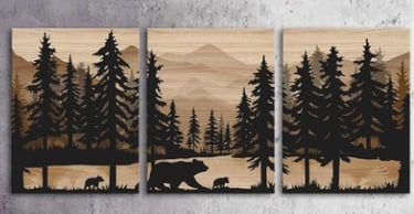 WELMECO Rustic Bear Wall Art set featuring three framed 12" × 16" canvas panels. Perfect for cabin, farmhouse, or rustic décor in bedrooms, bathrooms, and living rooms
